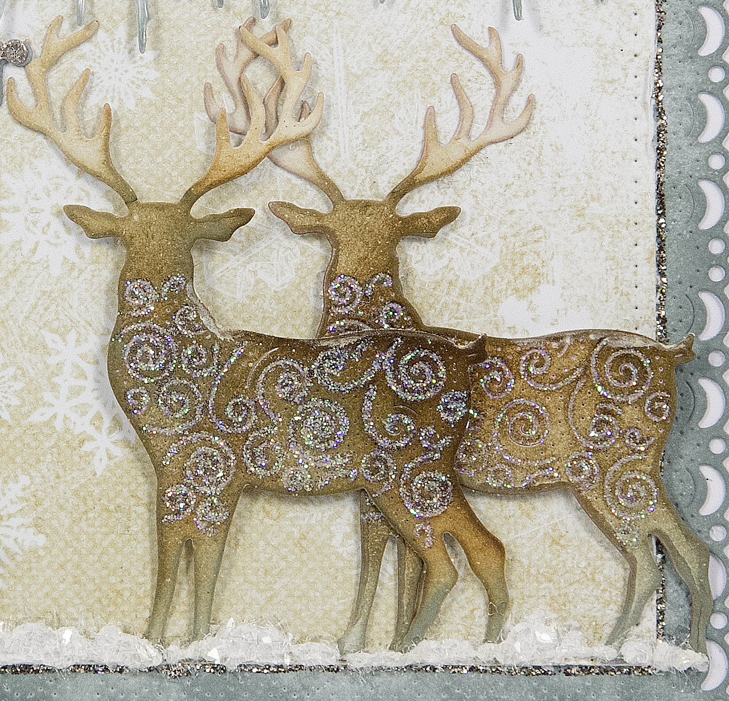My reindeer were also shaded with Distress Inks adding some sparkle onto them in the same way I did my trees. I do love how you can add the extra sparkle onto the embossed areas.